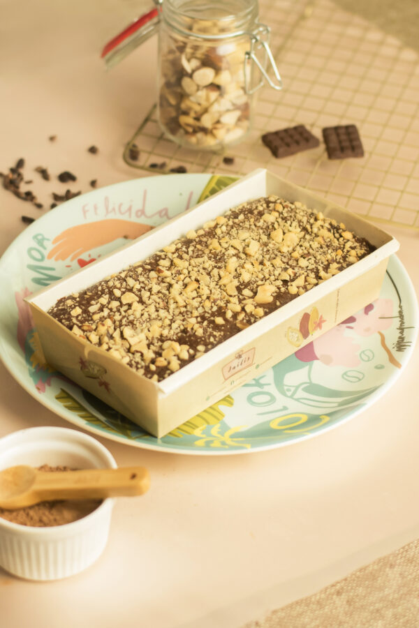 Torta con chocolate de cacao modelo araucano al 70% con Nueces del Brasil. Cacao cultivado y procesado en el Departamento de Arauca denominado cacao de sabor y aroma